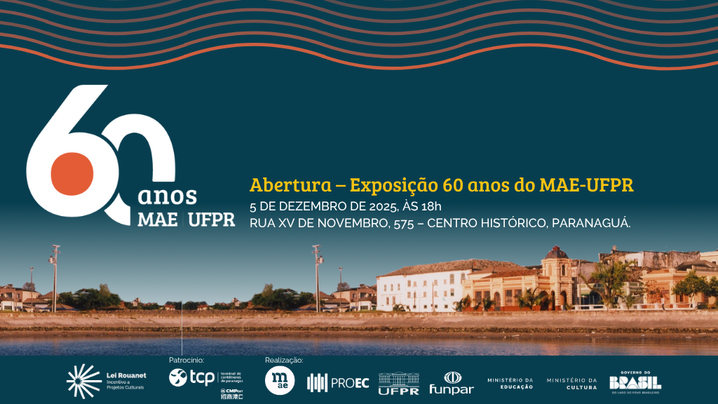 O Museu de Arqueologia e Etnologia da Universidade Federal do Paraná (MAE-UFPR) inaugura, no dia 5 de dezembro, às 18h, a exposição “60 anos do MAE-UFPR”, que marca seis décadas de história da instituição, fundada em 1963 como o primeiro museu universitário do Paraná.